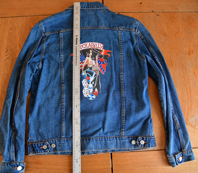 New - Rockabilly, USA Style Denim Jean Jacket. See pictures for sizes.